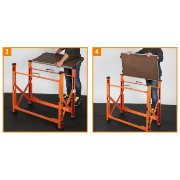 Banco da lavoro pieghevole, versione Light Ancora più leggero: solo 18,5 kg. Caratteristiche principali: • Leggero, compatto e facilmente trasportabile • Piano di lavoro 800x500mm in lamiera zincata utilizzabile da un solo lato, protetto con rivestimento in gomma antiolio e antibenzina • Maniglia con protezione in gomma per un agevole trasporto • Piedini con copertura anti-scivolamento • Capacità di carico statico: 200 kg