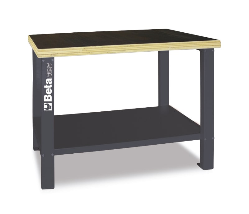 Caratteristiche principali: ? Piano di lavoro in legno multistrato con fori per la collocazione di una morsa 1599F/125 - 1599GI/125 (da ordinare separatamente). ? Struttura in acciaio con 4 gambe di sostegno ? Capacita di carico statico: 800 kg. ? Ripiano inferiore portaoggetti con capacita di carico 150 kg. (uniformemente distribuiti) ? Predisposizione per il fissaggio al pavimento 1500x930x720 mm