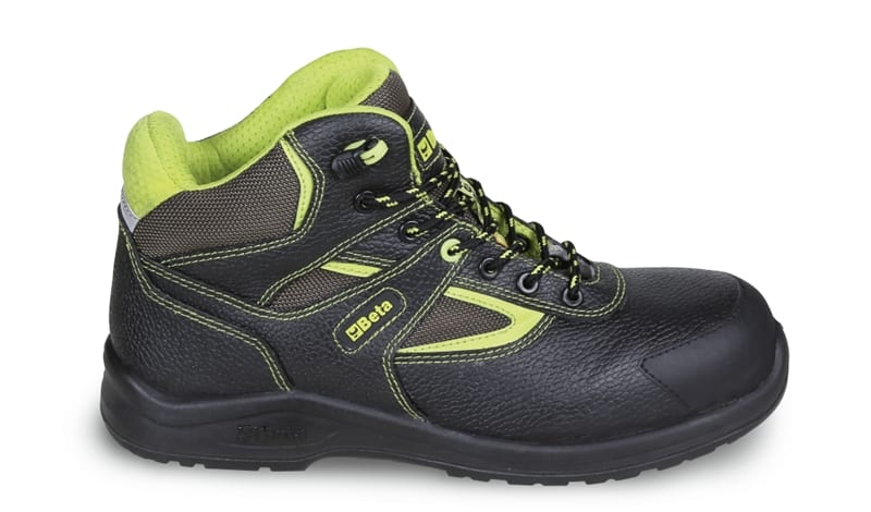 Tomaia:Pelle idrorepellente con inserti in nylon e rinforzo antiabrasione nella zona del puntale Suola:Poliuretano bidensita Puntale:Materiale polimerico, resistenza 200 Joule Antiperforazione:Fibra composita con trattamenti ceramici Sottopiede:Anatomico in carbon Peso:590 (g) Taglie:EU: 35-48 UK: 2,5-13 Note:Rapido sfilamento