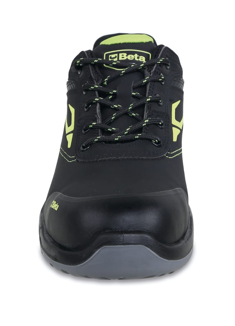 Tomaia:Action nabuk idrorepellente con rinforzo antiabrasione nella zona del puntale e supporto di stabilita al tallone. Suola:Poliuretano bidensita Puntale:Materiale polimerico, resistenza 200 Joule. Antiperforazione:Fibra composita con trattamenti ceramici. Sottopiede:Anatomico con rialzo ammortizzante nella zona del tallone. Peso:550 (g) Taglie:EU: 35-48 UK: 2,5-13