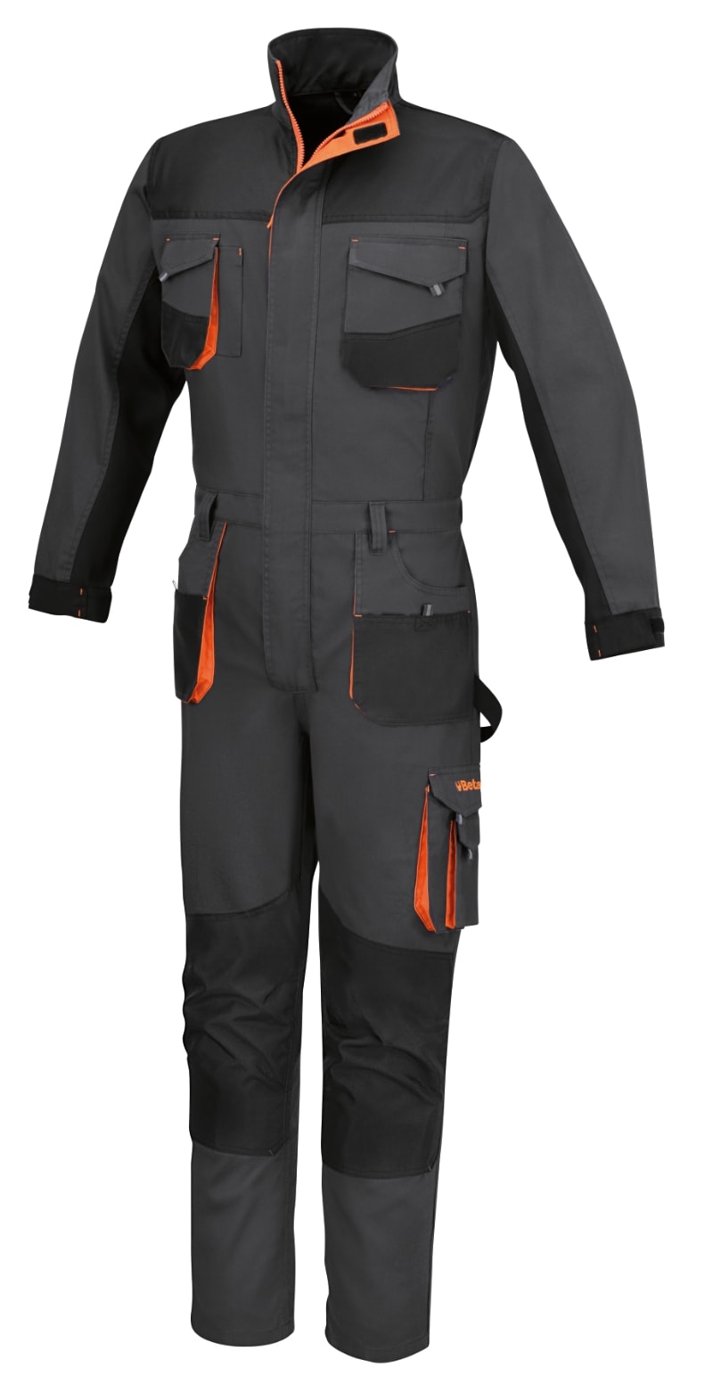 MATERIALE:? Tessuto principale: T/C twill, 65% poliestere, 35% cotone, 180 g ? Inserti: ?Oxford? poliestere/PU, 220 g CARATTERISTICHE:? Inserti e ginocchiere in ?Oxford? poliestere/PU, 220 g ? Polsini regolabili a strappo ? Chiusura frontale con zip doppio cursore, coperta da patella con chiusura a strappo ? Elastico in vita ? Tasche al petto con chiusura a strappo e taschino porta penna ? Due profonde tasche anteriori dotate di inserti porta minuteria con chiusura a strappo ? Tascone laterale sinistro con chiusura a strappo, dotato di taschino porta cellulare ed inserto porta badge ? Tasconi posteriori con rinforzi in ?Oxford? e chiusura a strappo ? Tasca porta metro e nastro porta martello ? Tasche per ginocchiere COLORE:Grigio TAGLIE:XS, S, M, L, XL, XXL, XXXL, XXXXL, 5XL 60