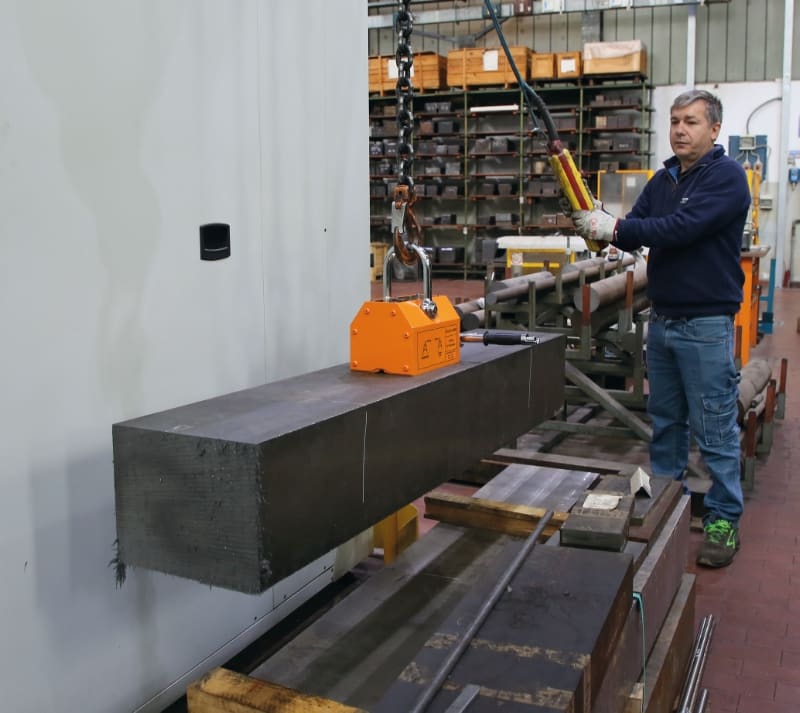 I sollevatori magnetici permanenti ROBUR sono attrezzature compatte, robuste ed affidabili, ampiamente utilizzate in fabbriche, magazzini, banchine portuali e in strutture di trasporto. Progettate in conformita alla norma europea EN13155, queste attrezzature sono idonee a sollevare e movimentare materiali in ferro magnetico come stampi, lamiere, tubi, raccordi, travi e barre. Il magnete permanente e realizzato in una lega al Neodimio Ferro e Boro, in grado di esercitare una forza attrattiva estremamente elevata, tanto da essere definita ;supermagnetica;. Non e richiesta tensione elettrica, dunque possono essere utilizzati anche in luoghi in cui non sia disponibile l'allacciamento. Un solo operatore puo sollevare, trasportare e rilasciare il caricofacilmente, agendo sulla leva di manovra: quando viene attivata la leva, sulla posizione ON, un meccanismo a molla la blocca, mantenendo il magnete attivo e prevenendo un disattivazione accidentale. NOTE TECNICHE: ? Non rimuovere mail la leva dalla posizione ON finche il carico non si trova a terra. ? L'efficienza massima e garantita con materiali a basso tenore di carbonio(es. S235, S275, S355) ? Non utilizzare con materiali amagnetici o parzialmente magnetici (es. acciaio inox Aisi 304) ? Controllare sempre il traferro e in funzione di esso ridurre la portata o valutarne l'impossibilita di utilizzo. ? Verificare che tra il magnete e il carico non siano presenti pellicole protettive, sporco, grasso, olio, ecc e nel caso rimuoverle. ? Controllare sempre lo spessore della superficie, e in funzione di essa ridurre la portata o valutarne l'impossibilita di utilizzo. ? Per superfici tonde e sempre necessario ridurre la portata come indicato sul manuale. Dati tecnici: ? Coefficiente di sicurezza: 3 ? Piastra di identificazione seriale Certificati disponibili: ? Certificato del Fabbricante ? Dichiarazione di Conformita CE ? Rapporto di Prova tipo 2.2 UNI EN10204 ? Manuale d'uso e manutenzione
