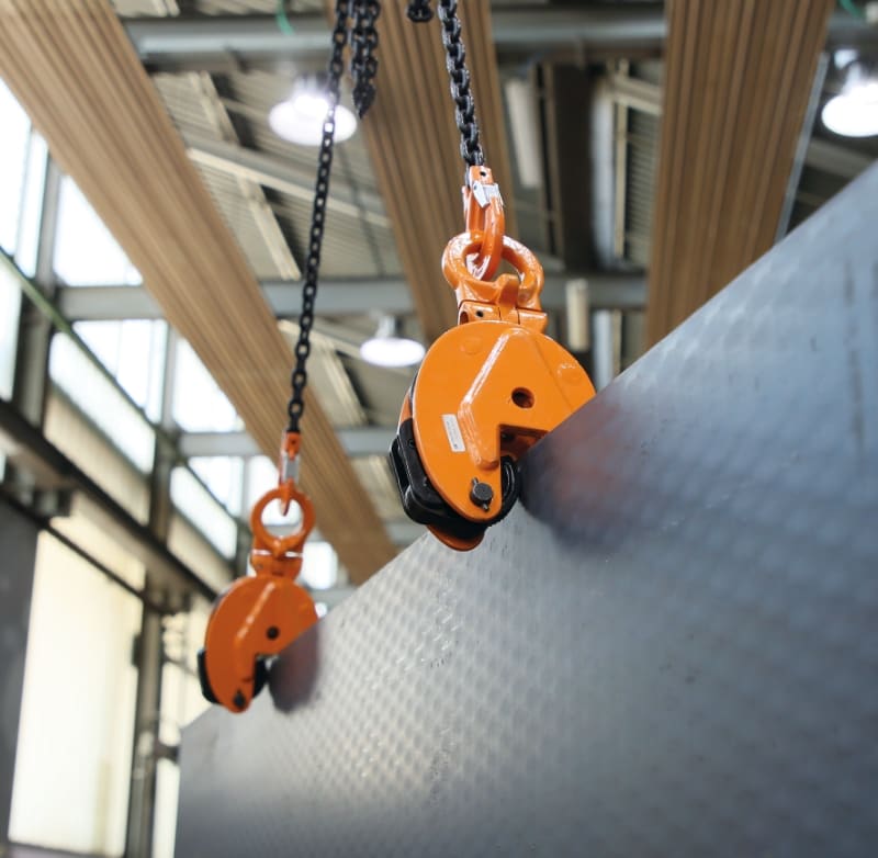 Caratteristiche: ? Modello professionale, a norma EN13155, realizzato con materiali di alta qualita ? Idonea per sollevamento, ribaltamento fino 180? e trasporto lamiere in posizione verticale ? Indicata per lamiere con durezza max 30HRC (300HB) ? Dispositivo di blocco camma per facilitare inserimento lamiera e serraggio in sicurezza ? Piastrina di identificazione con numero seriale e numero di lotto ? Coefficiente di sicurezza 3:1 *Non sollevare mai un carico di peso inferiore al 10% della portata massima nominale Dati tecnici: ? Coefficiente di sicurezza: 3 ? Piastra di identificazione seriale Certificati disponibili: ? Certificato del Fabbricante ? Dichiarazione di Conformita CE ? Rapporto di Prova tipo 2.2 UNI EN10204