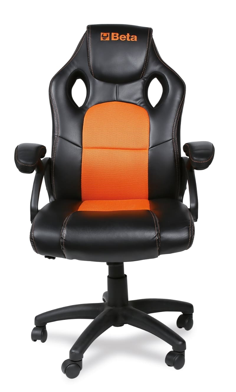 Sedia da ufficio ergonomica e dal carattere sportivo grazie alla duplice colorazione arancione/nera e a un design dalle linee accattivanti. Caratteristiche: ? Schienale ergonomico ? Rivestimento in finta pelle PU, facile da pulire ? Imbottitura spessa in spugna ad alta densita per il massimo comfort ? Sedile regolabile in altezza mediante alzata a gas ? Braccioli curvi imbottiti ? Rotelle in PU adatte a pavimenti duri ? Capacita di carico massima fino a 120 kg Dimensioni: Altezza schienale: 60 cm Dimensioni seduta: 45 cm x 51 cm Altezza totale sedia: 110-120 cm Base: 28 cm (lunghezza gamba) x 50-60 cm (altezza)