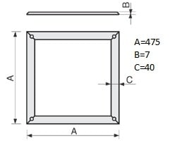 La cornice di finitura in acciaio inox cromato, compatibile con la scatola di derivazione MCS-425 e il coperchio MCM 425x25, ha dimensioni massime di 475 x 475 mm, un profilo largo 40 mm e uno spessore di 7 mm. Garantisce una finitura estetica impeccabile e si fissa saldamente con 4 viti agli angoli per un'installazione sicura.