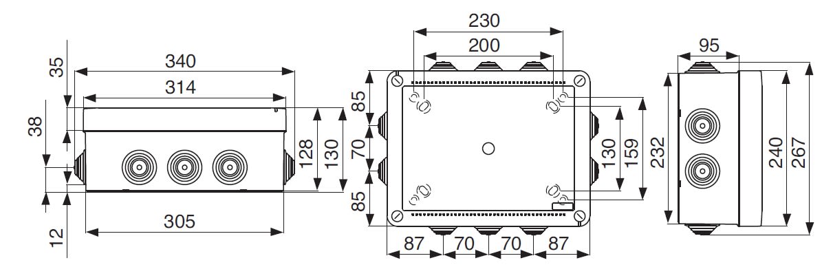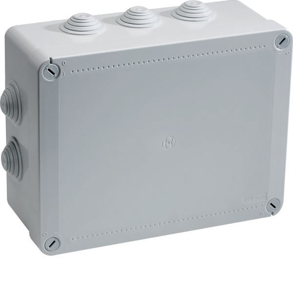 Cassetta di derivazione stagna da parete della linea Pico, misura 06, con coperchio standard e 10 passatubi laterali per tubi rigidi da 16, 20, 25, 32 e 40 mm ideale per proteggere e organizzare le connessioni elettriche indoor e outdoor. Realizzata in ABS autoestinguente grigio (RAL 7035), offre resistenza ai raggi UV e agli impatti IK08 (EN 62262). Il sistema di chiusura con viti in plastica a 1/4 di giro garantisce una protezione IP55. Dimensioni 300x220x120 mm (LxHxP).
