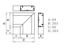 Flachwinkel für Geräteeinbaukanal AP-ALU 200x60 Weiß