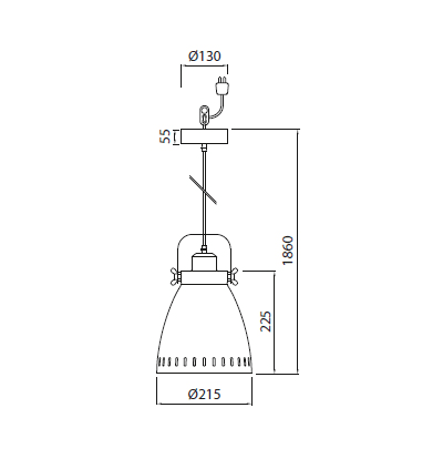 Lampada a sospensione Sansa 220-240V in stile industriale. Corpo in metallo bianco. Incluso cavo da 1,5 metri e coppa da soffitto. Monta una sorgente led con attacco E27 – 40W max. (non inclusa).