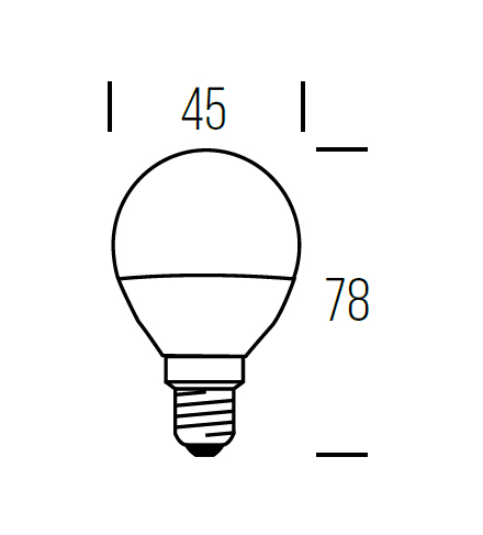 Lampade a LED STD - Sfera opale A45 220-240V equivalenza a 40W. LED 5,4W E14 470lm 2700K. Dimensioni: 78x45mm.