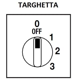 Commutatore graduale 2 poli 3 vie con 0, montaggio retroquadro con viti, mostrina grigia 48x48mm, manopola nera, IP65