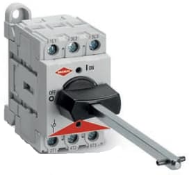 Sezionatore per montaggio fondoquadro, fissaggio con 2 viti. Mostrina grigia lucchettabile 67x67mm, manopola nera, IP66.