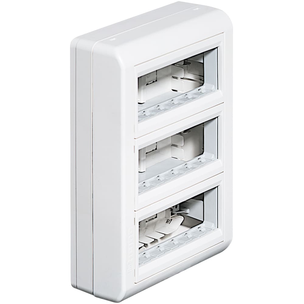 centralino multifunzione da parete, con telaio, supporti e placche per 18 moduli (3 scomparti da 6)