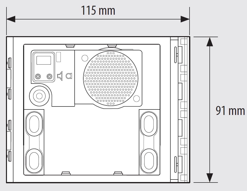 Modulo fonico base Sfera per la realizzazione di impianti citofonici 2 fili. Dotato di regolazioni volume altoparlante e microfono. Gestisce fino ad un massimo di 100 chiamate a pulsanti, utilizzando moduli pulsanti doppia fila aggiuntivi. Consente l\'attivazione di una elettroserratura collegata direttamente ai morsetti S+ ed S- (18 V 4 A impulsivi - 250 mA mantenimento su 30 ohm max) ed il collegamento di un pulsante apriporta locale sui morsetti PL. Da completare con frontale di finitura. Il dispositivo deve essere configurato fisicamente.