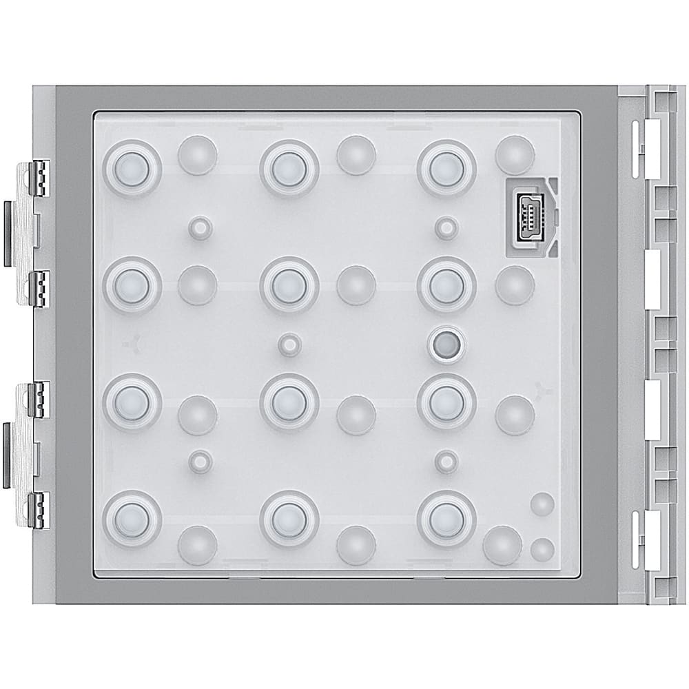 Modulo tastiera per attivazione elettroserratura o per chiamata digitale all’appartamento (abbinato a modulo display). E\' dotato di relè con contatti (C - NO - NC) e di morsetti (CP - P1 - P2) per il collegamento di un pulsante apriporta locale. Il codice numerico per l’attivazione della elettroserratura è programmabile dalla tastiera stessa oppure tramite PC effettuando il download del file di programmazione al modulo. Dispone di pulsante per il reset della programmazione e di LED per l’indicazione visiva dello stato di accesso. Retroilluminazione notturna a LED. Da completare con frontale di finitura. Collegamento agli altri moduli tramite apposito multicavo fornito a corredo. Il dispositivo può essere utilizzato anche stand - alone con alimentazione e funzionamento autonomi per la sola attivazione elettroserratura. Configurazione tramite configuratori fisici oppure tramite PC e software TiSferaDesign.
