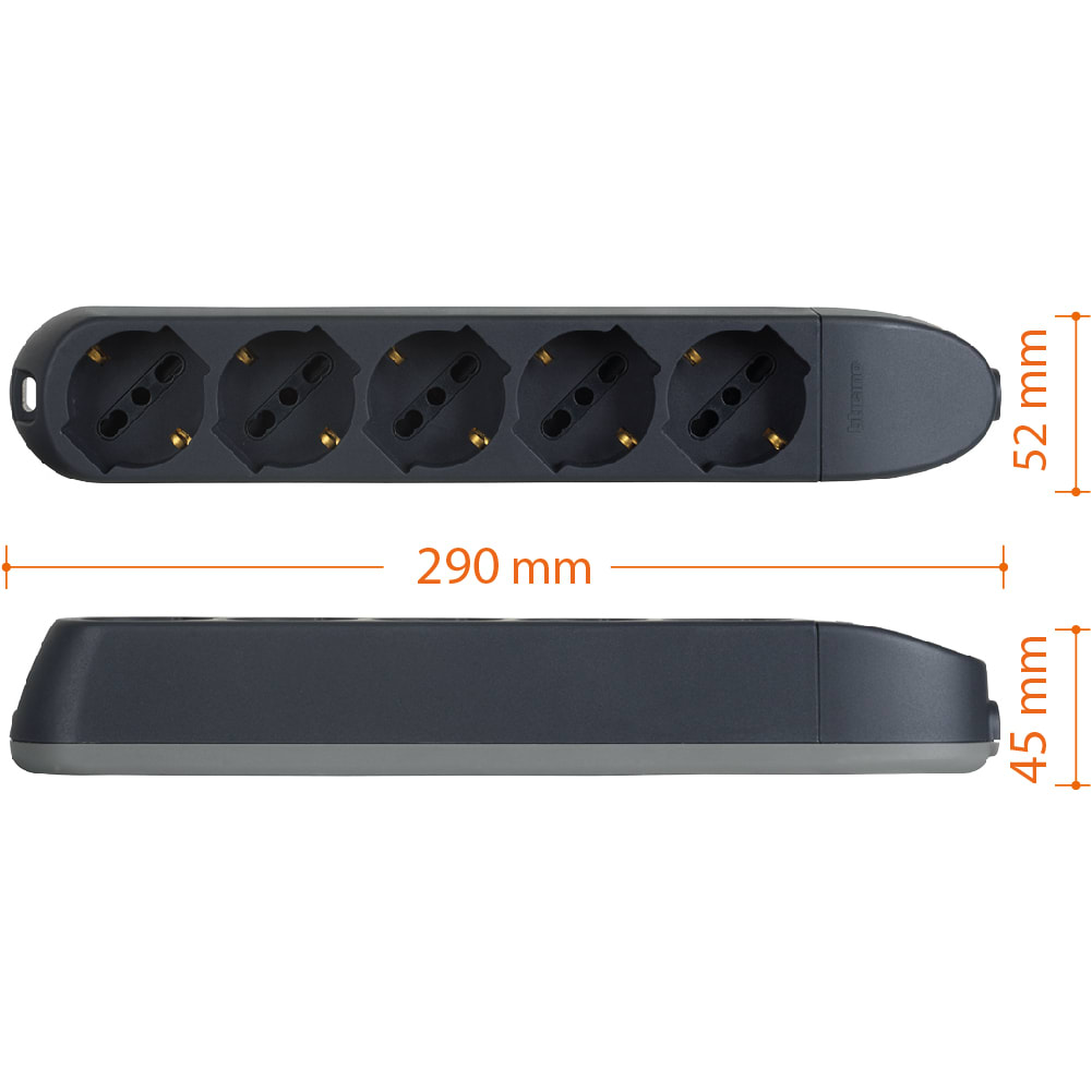 BTICINO - BTI3682G MULTIPRESA 5 SCHUKO/BIPAS SENZA CAVO GRI