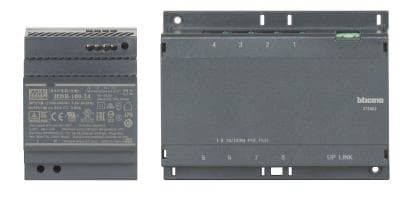 Switch PoE (Power over Ethernet) 10/100 Mbps, 8 porte PoE e 1 porta uplink non-POE . Alimentazione 24 V-100 W. La porta PoE è utilizzata per la comunicazione di rete e alimentazione. Installazione da guida DIN (totale 14 moduli DIN).