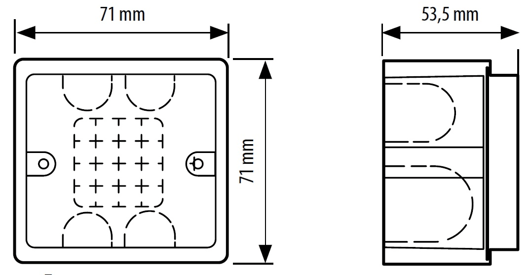 Scatola 2 moduli da incasso per pareti e soffitti in muratura, per l’installazione delle serie civili, con viti per fissaggio supporto a corredo - Dimensioni 71 x 71 x 53,5 mm