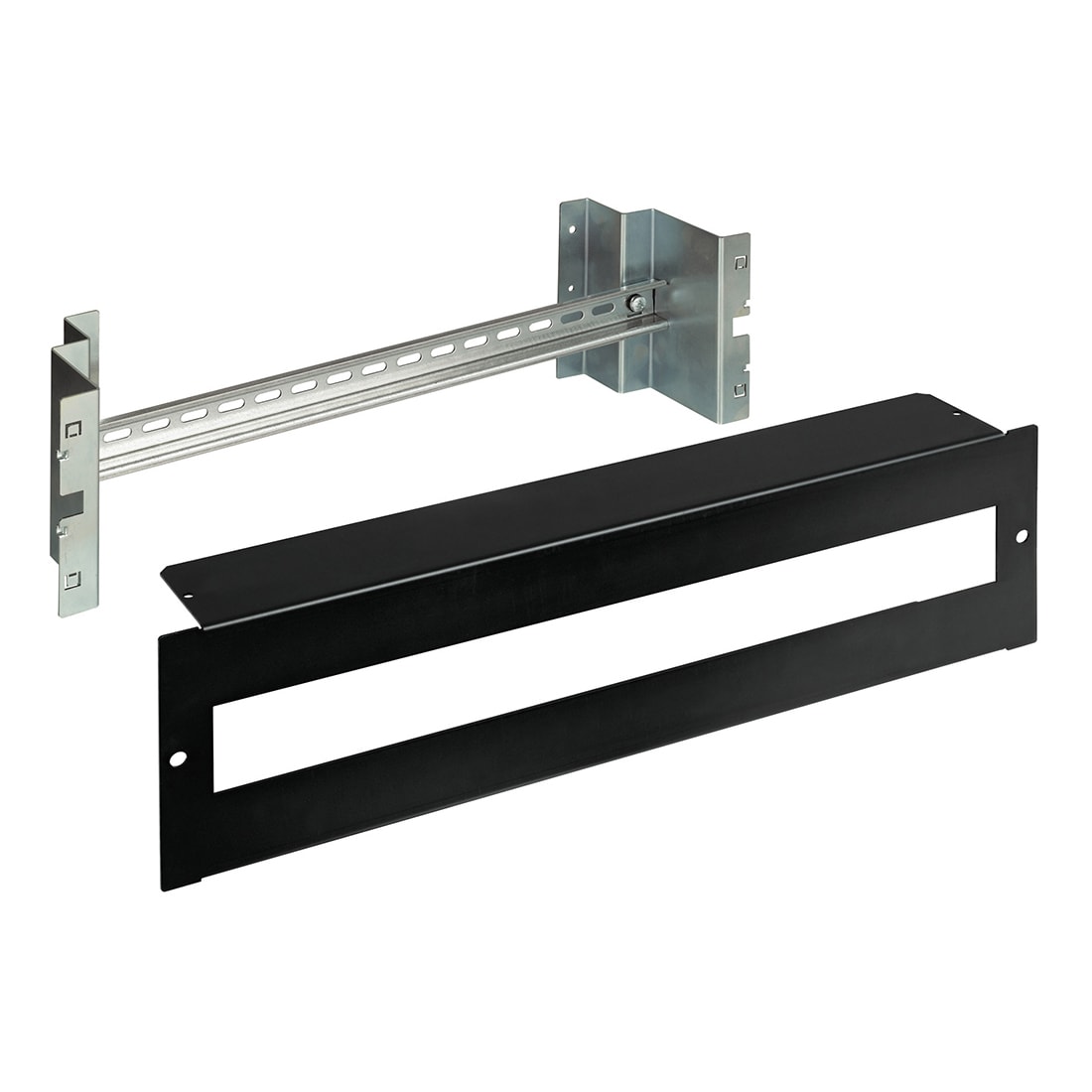Barra DIN per montaggio nei quadri da parete e negli armadi da pavimento di componenti con modularità DIN35 - installazione fino a 24 moduli DIN – colore nero RAL9005 - 3 unità rack