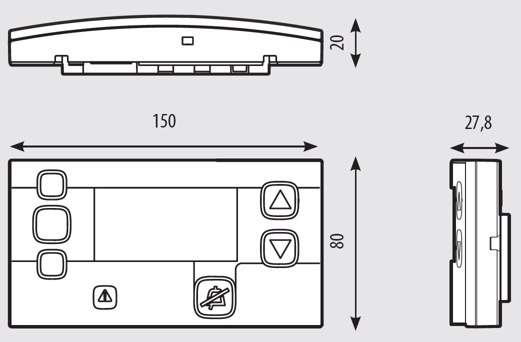 Terminale di presidio secondario. Può essere installato in aggiunta al terminale di presidio principale, in una sala infermieri, in un secondo locale di presidio, in uno studio medico. Include il supporto per l’installazione. Dispositivo in materiale antibatterico.