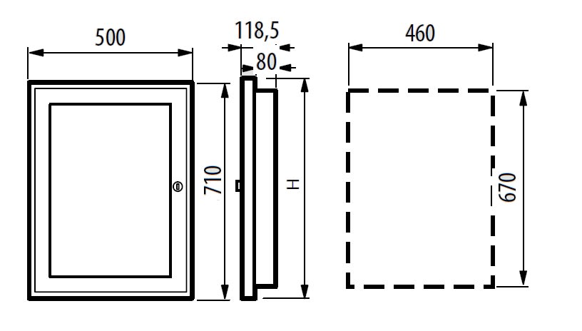Quadro da incasso in lamiera con portello con cristallo - per 54 moduli DIN su 3 file