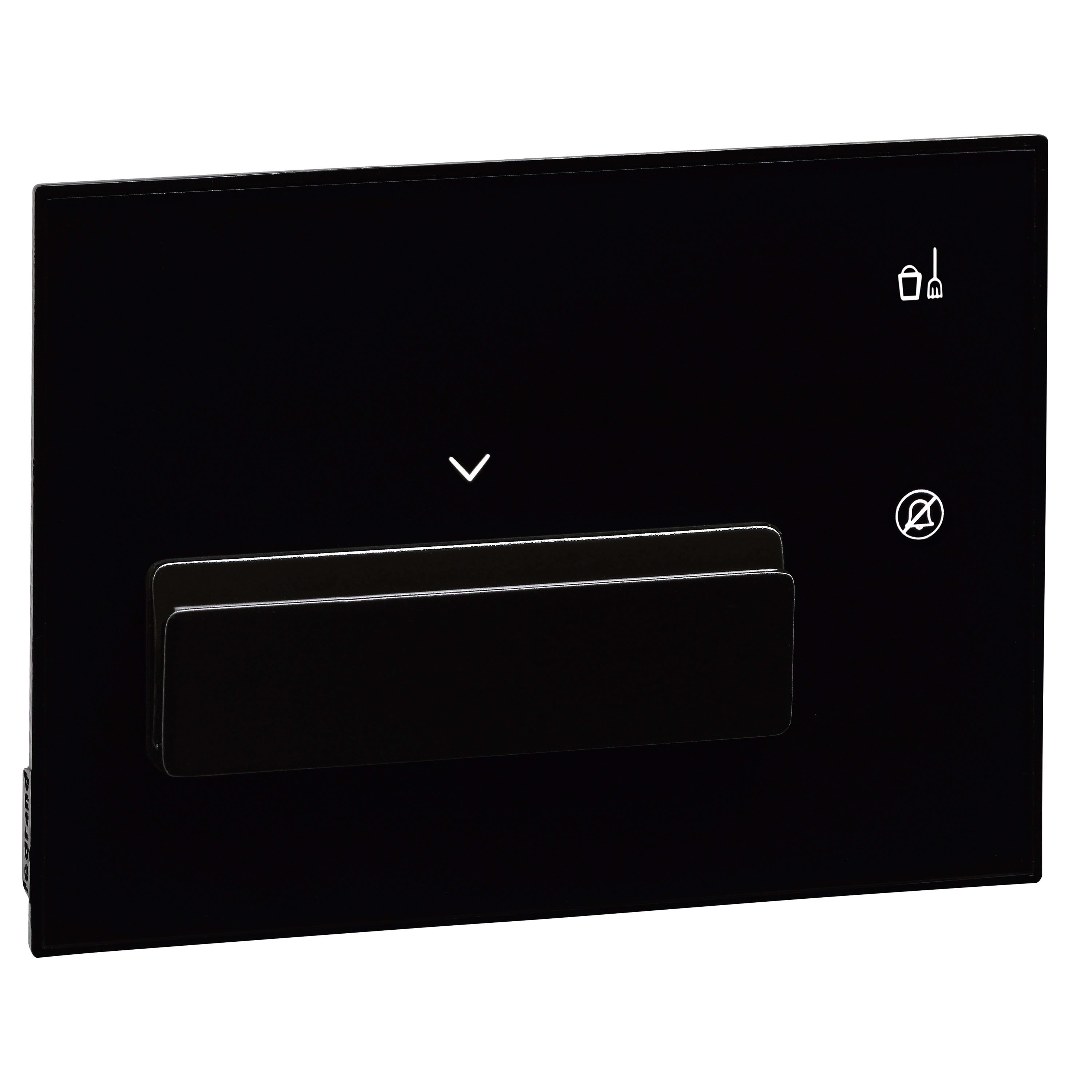 Tasca porta-badge EVOLUTA, con finitura placca colore NERO con lettore RFID in materiale plastico della serie PREMIUM.Permette l’attivazione delle funzioni nella camera di albergo con riconoscimento in tecnologia RFID e di comandare le segnalazioni fuoriporta di NON DISTURBARE (DND) e“RIORDINARE LA CAMERA” (MUR). Inoltre tramite l’informazione sul badge (CLIENTE o STAFF) permette di richiamare differenti scenari.Fessura per badge con illuminazione incorporata.Collegamento a SCS-BUS, dimensioni 3 moduli.