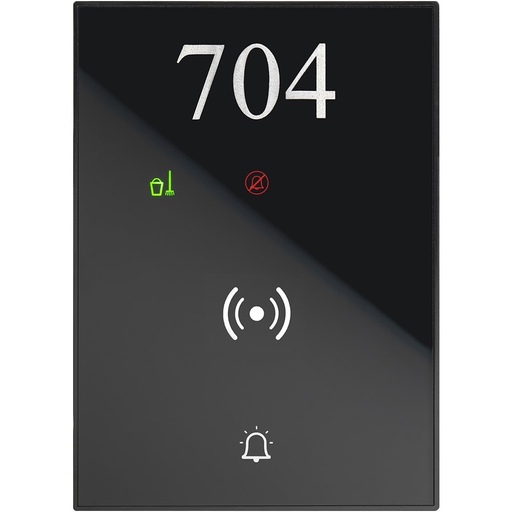 Lettore badge + Indicatore fuori porta con finitura placca colore BIANCO in materiale plastico.Comprende lettore badge in tecnologia RFID + indicatori NON DISTURBARE (DND) e RIORDINARE LA CAMERA (MUR) e pulsante per suoneria.Il dispositivo è dotato di uncontatto pulito NC comandato dal simbolo suoneria. Il contatto è programmabile per la funzione suoneria o comando elettro-serratura porta.Installazione in verticaleCollegamento a SCS-BUS, dimensioni 3 moduli.