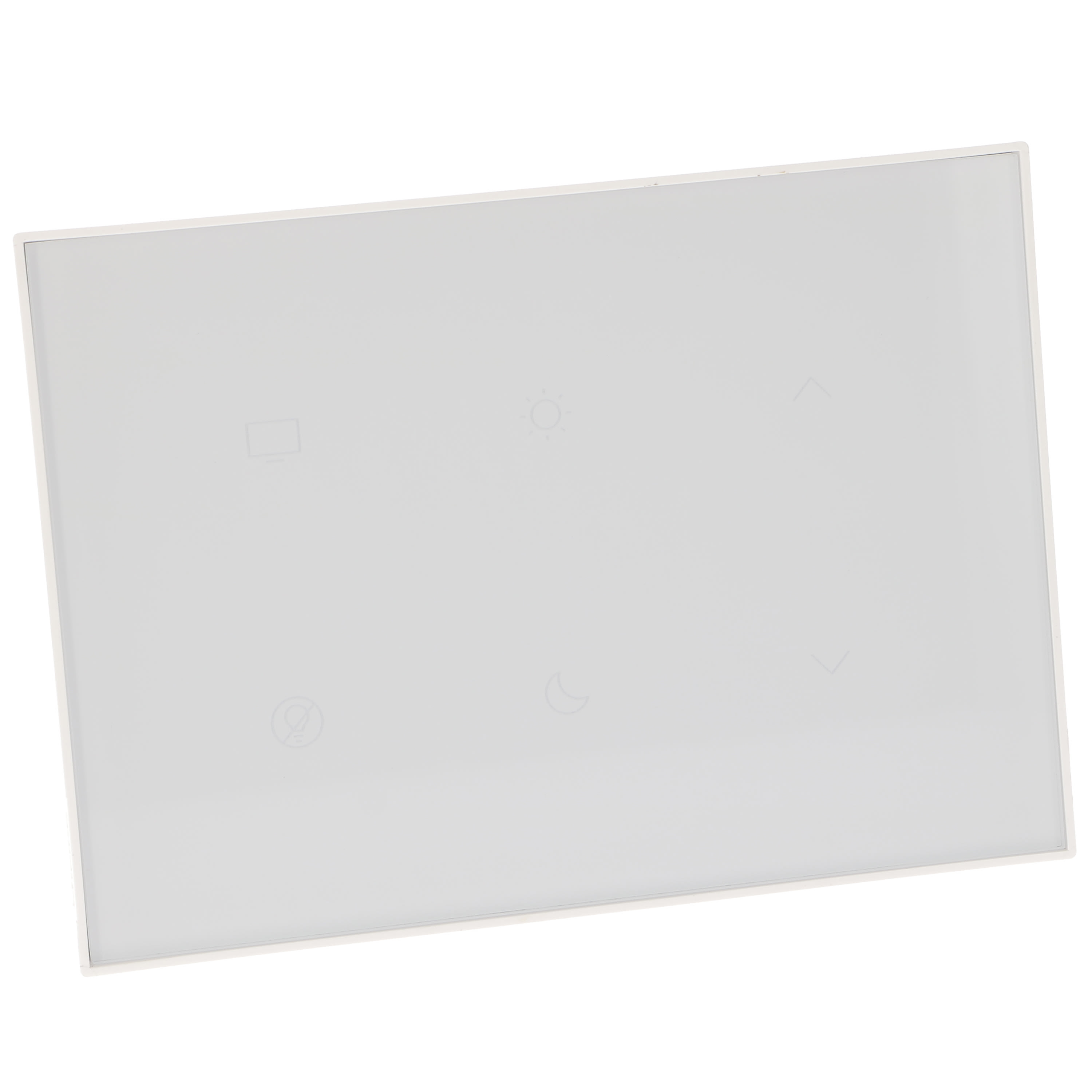dispositivo a 6 comandi scenari touch con finitura placcacolore BIANCO in materiale plastico.Gli scenari sono:- Risveglio- Dormire- TV- Generale OFF- Apertura tende- Chiusura tendeI 6 comandi scenari sono da programmare nelMH201. Collegamento a SCS-BUS, dimensioni 2moduli.