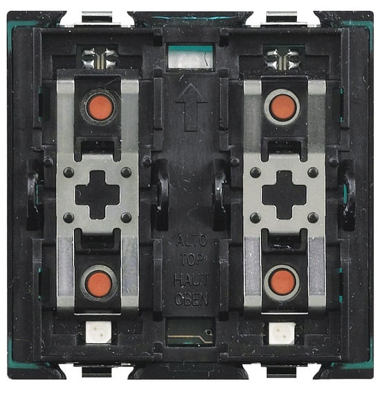 Attuatore Axolute ad incasso con 2 relè interni 2A 250Vac e dotato di 4 pulsanti e 3 led bicolore realizzato per funzionare in abbinamento ai dispositivi di comando evoluti H4660M2 specifici per la gestione delle tapparelle - 2 moduli.