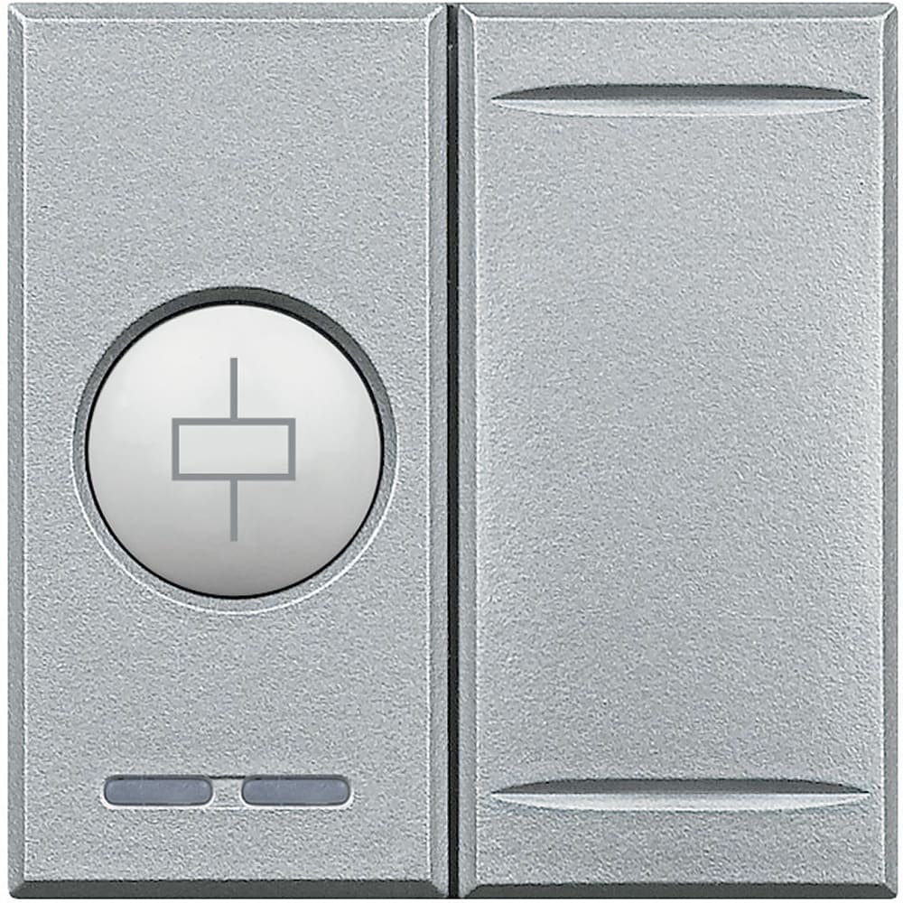 Attuatore Axolute con 1 relè 10 A per lampade ad incandescenza 4 A per lampade fluorescenti o trasformatori ferromagnetici e 500 W per lampade a LED e fluorescenti compatte destinato alle funzioni di Automazione e/o Gestione controllo carichi. Pulsante per funzionamento forzato del carico versione da incasso - 2 moduli.