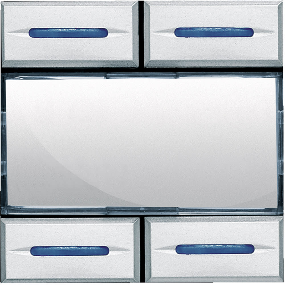 Comando scenari personalizzabile per comandare 4 situazioni ambientali di Automazione, Termoregolazione o Diffusione sonora indipendenti, memorizzate nel modulo art. F420 - 2 moduli