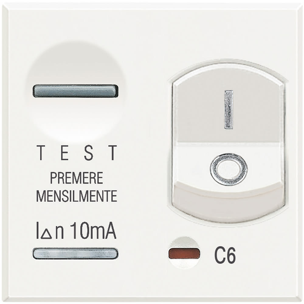 interruttore automatico differenziale 2P con 1P protetto Idn 10mA -6A 230 Vac potere di interruzione 1,5 kA - bianco