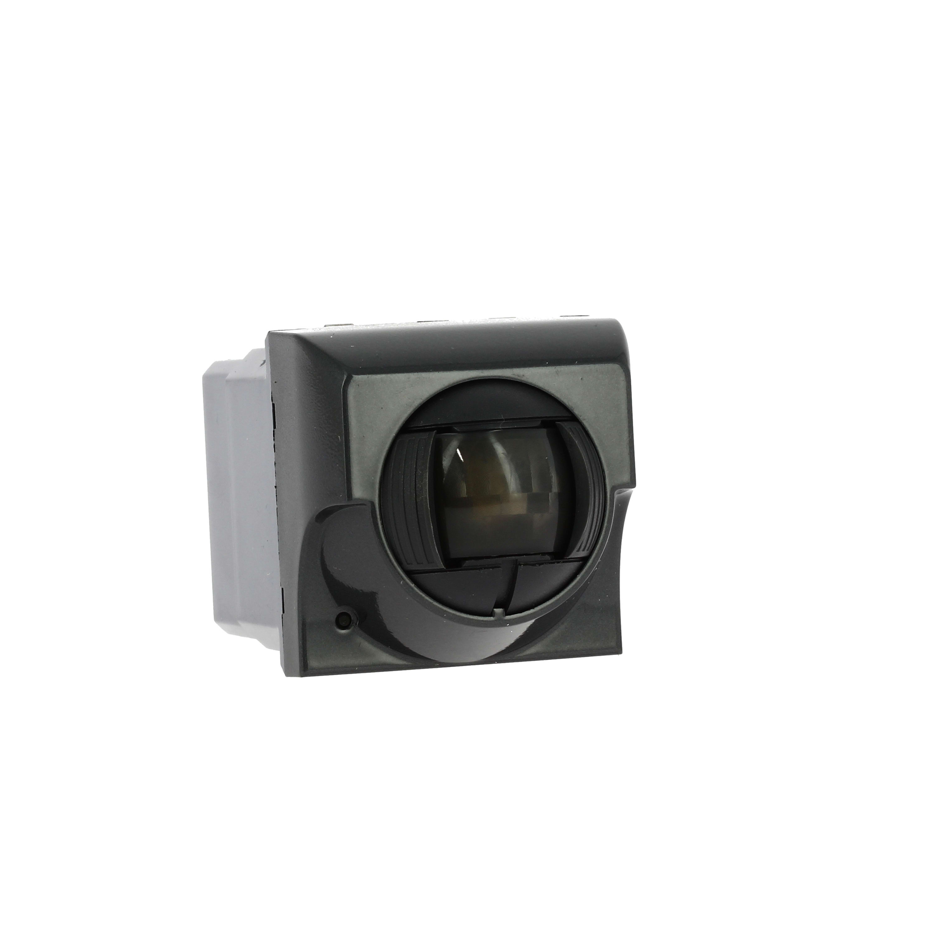 Rilevatore a doppia tecnologia (PIR + MW) - portata 8m - installazione ad incasso - 2 moduli - estetica AXOLUTE colore grigio antracite.