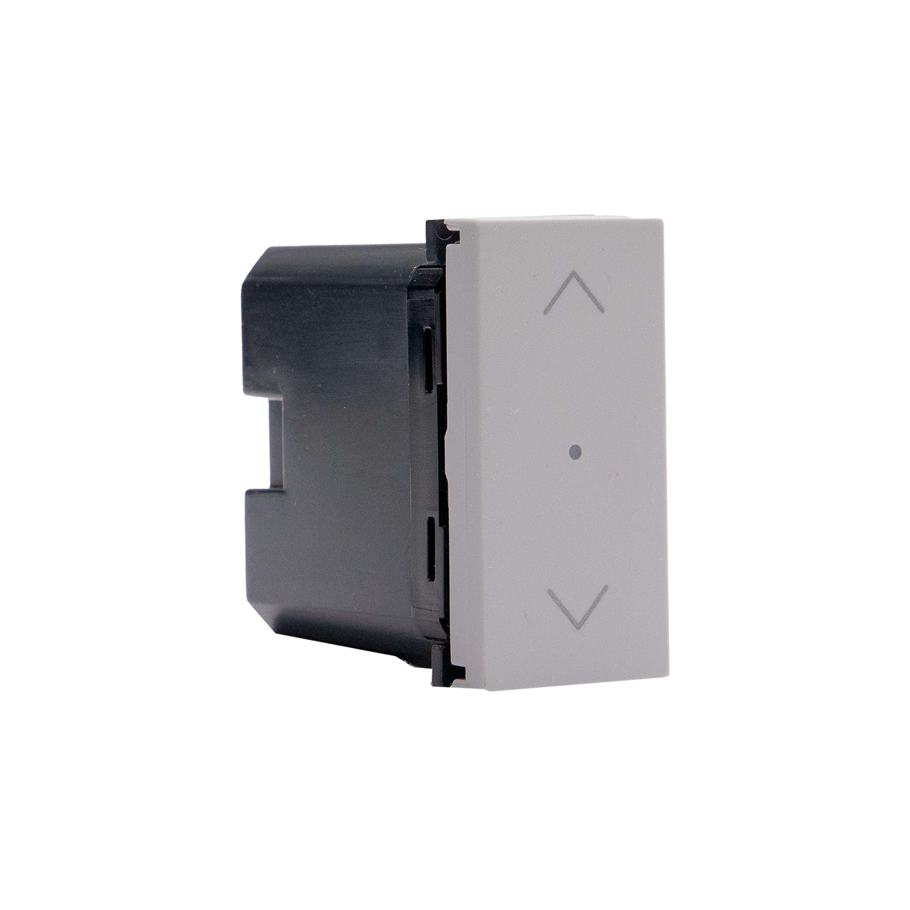 Comando wireless per tapparelle; permette il controllo di uno o più comandi tapparella connessi. Può essere installato in qualsiasi scatola da incasso senza alcun cablaggio. La batteria può essere sostituita senza rimuoverlo dal supporto. LED integrato per la segnalazione batteria scarica. Alimentazione a batteria 3V tipo CR2032 (fornita a corredo) con autonomia di 8 anni - 1 modulo - grigio