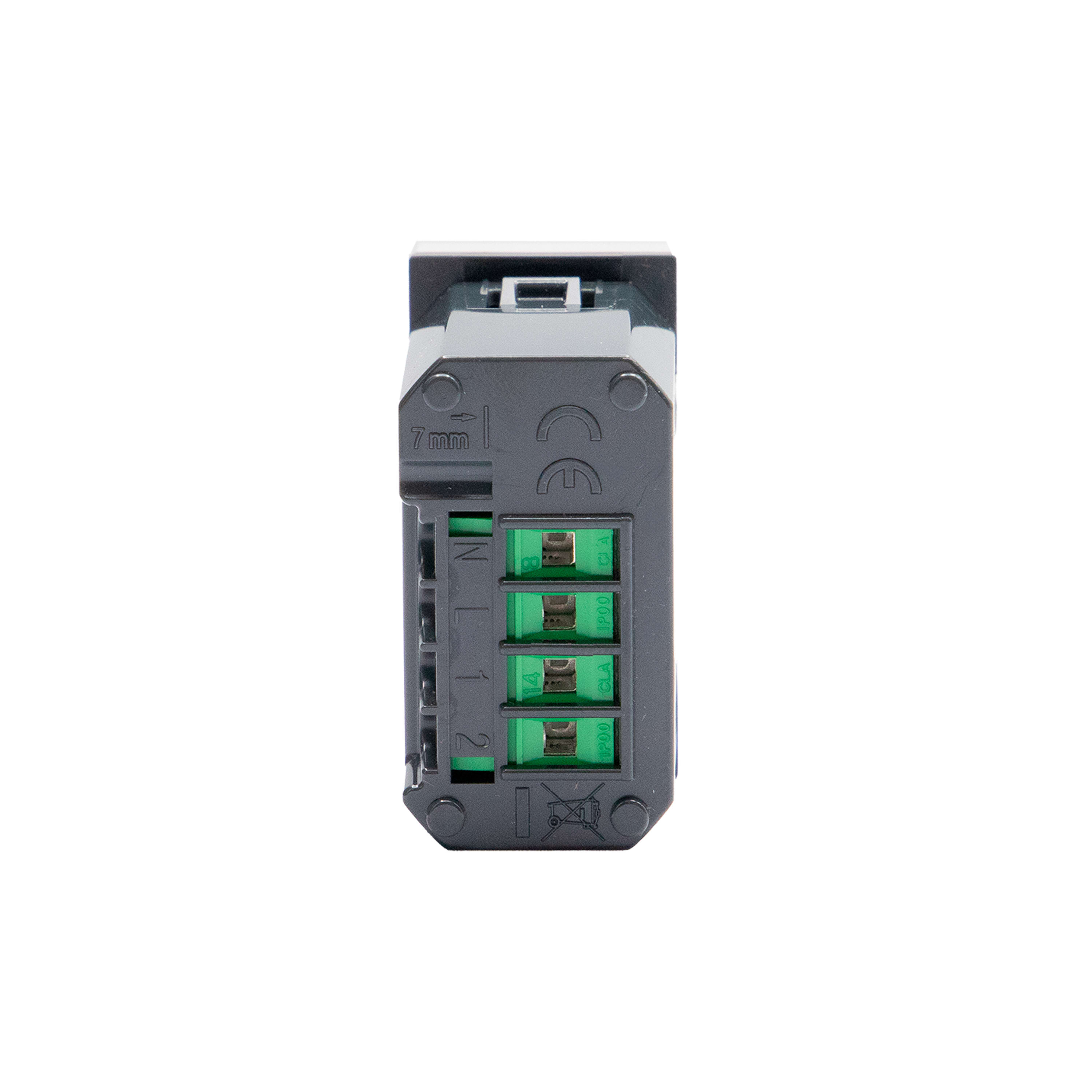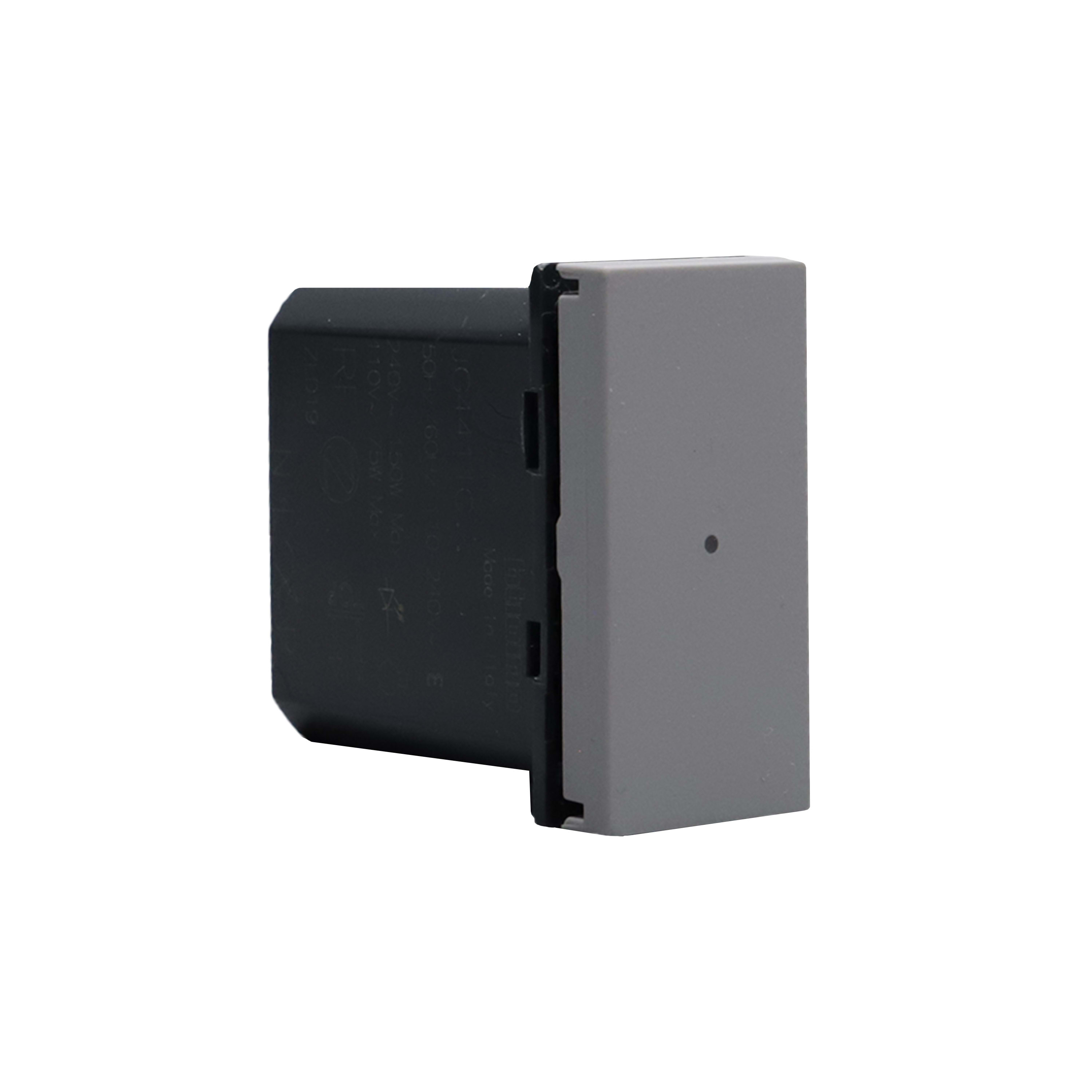 Interruttore/dimmer connesso. Permette di controllare le luci localmente o da remoto tramite APP Home+Control. Si installa come un interruttore tradizionale ed è compatibile con i carichi ad incandescenza o a LED (dimmerabili), di tipo capacitivo, con potenza max 150W a 230Vac. E dotato di un LED blu per le funzionalità di localizzazione e stato carico, configurabile da APP. Puo essere collegato a uno o più pulsanti tradizionali o associato ad uno o più comandi wireless. Attenzione: la funzione varialucesi attiva solo tramite APP ed è necessaria la connessione al neutro. Alimentazione 110-230Vac - 1 modulo - grigio
