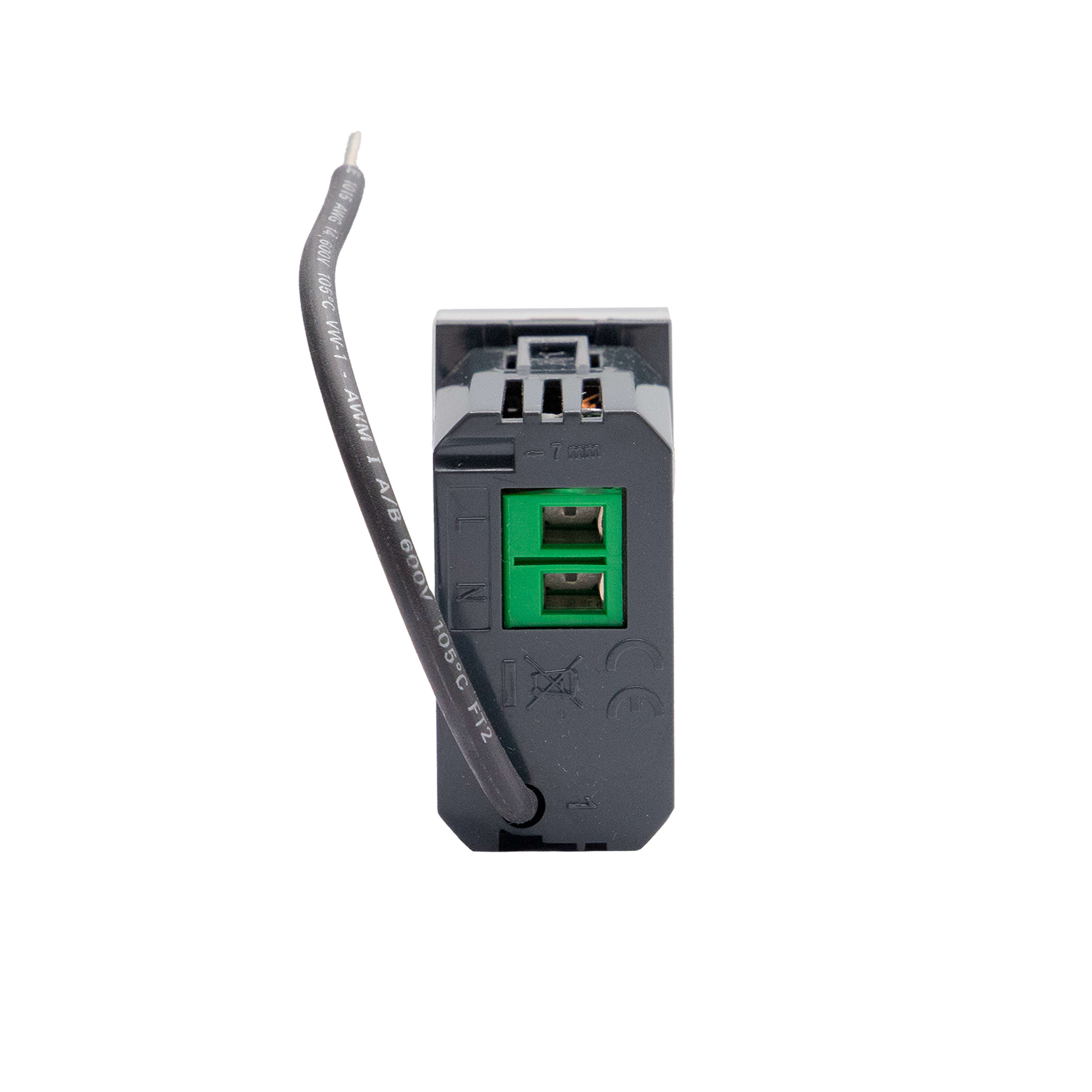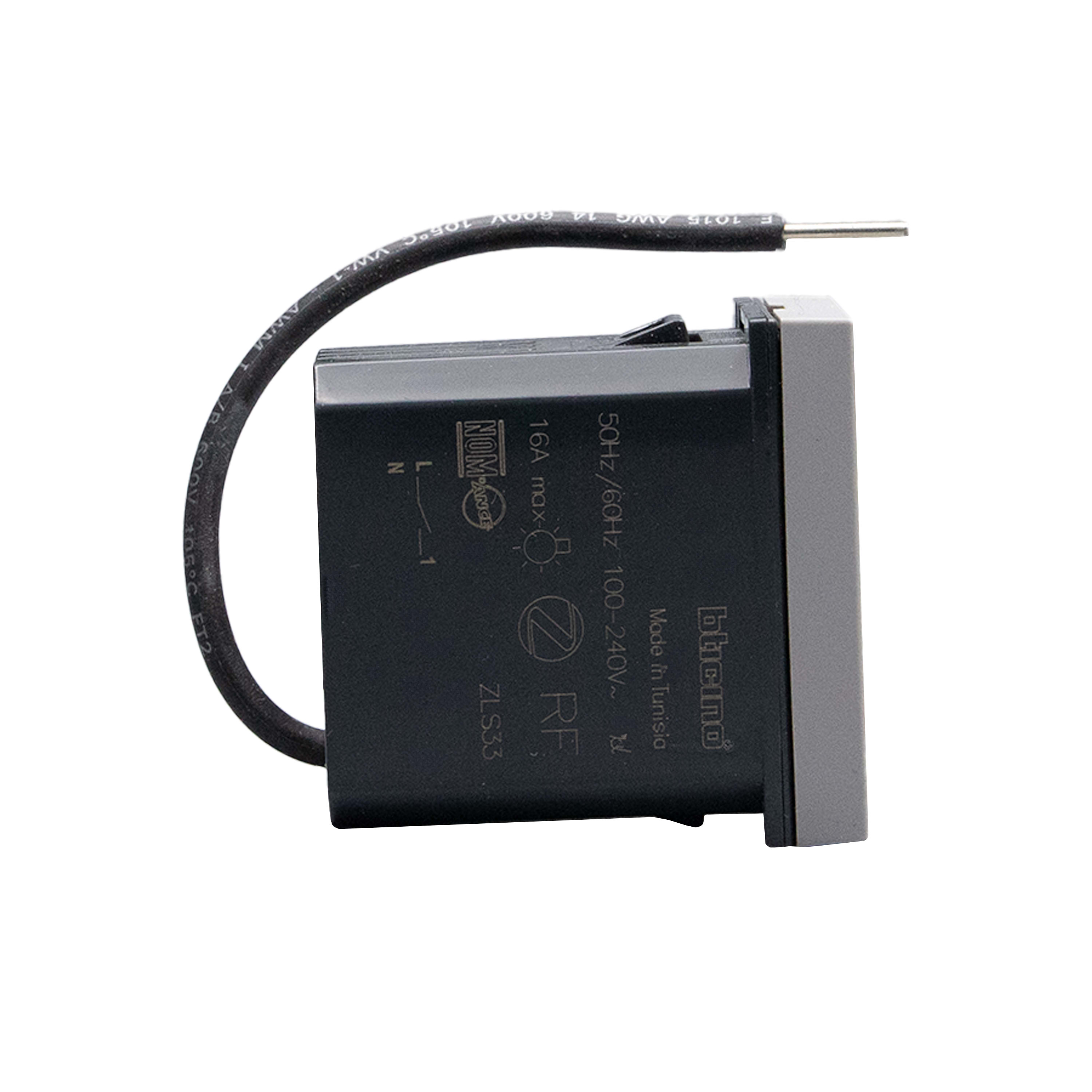 Modulo per presa connesso. Collegato ad una presa di corrente, consente il controllo remoto di dispositivi elettrici e di controllarne il consumo (istantaneo, giornaliero, mensile). È inoltre possibile ricevere notifiche in caso di consumi anomali. Compatibile con qualsiasi dispositivo elettrico con potenze fino a 3680W con assorbimento 16 A (protetto dai sovraccarichi). È dotato di un LED blu che si illumina quando la presa è accesa, configurabile dall’APP Home + Control. Può essere associato con comandi luci wireless. Alimentazione 110-230Vac - 1 modulo - grigio