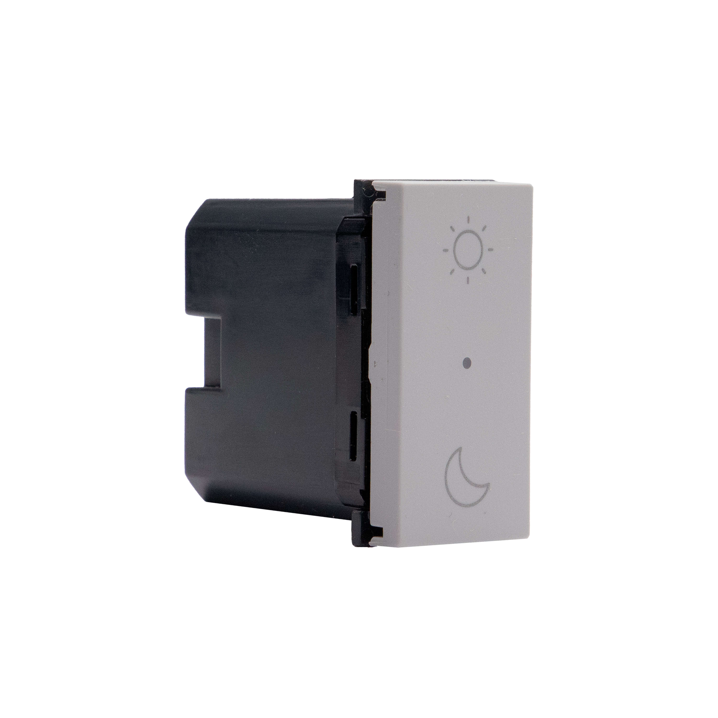 Comando scenario Notte&Giorno wireless dotato di 2 pulsanti per l’attivazione degli scenari Notte e Giorno personalizzabili dall’app Home + Control. Può essere installato in qualsiasi scatola da incasso senza alcun cablaggio. La batteria può essere sostituita senza rimuoverlo dal supporto. LED integrato per la segnalazione batteria scarica. Alimentazione a batteria 3V tipo CR2032 (fornita a corredo) con autonomia di 8 anni - 1 modulo