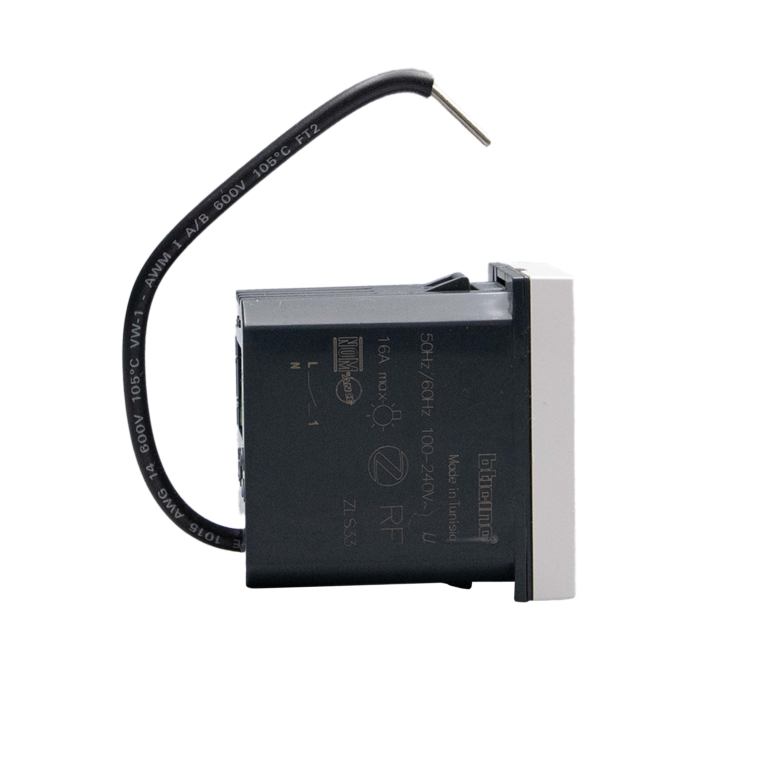 Modulo per presa connesso. Collegato ad una presa di corrente, consente il controllo remoto di dispositivi elettrici e di controllarne il consumo (istantaneo, giornaliero, mensile). È inoltre possibile ricevere notifiche in caso di consumi anomali. Compatibile con qualsiasi dispositivo elettrico con potenze fino a 3680W con assorbimento 16 A (protetto dai sovraccarichi). È dotato di un LED blu che si illumina quando la presa è accesa, configurabile dall’APP Home + Control. Può essere associato con comandi luci wireless. Alimentazione 110-230Vac - 1 modulo - bianco