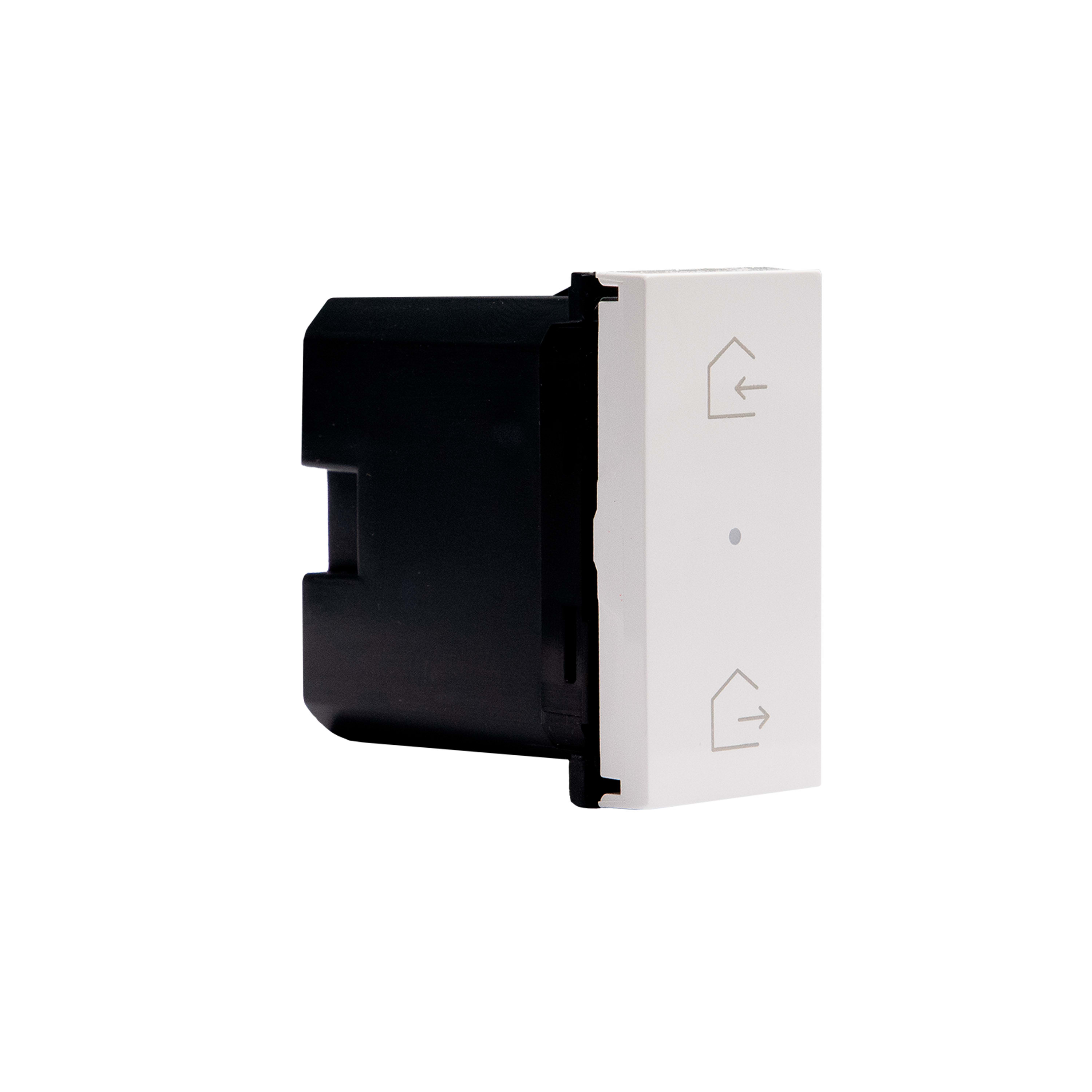 Comando scenario Entra&Esci wireless dotato di 2 pulsanti per l’attivazione degli scenari Entra ed Esci personalizzabili dall’app Home + Control. Può essere installato in qualsiasi scatola da incasso senza alcun cablaggio. La batteria può essere sostituita senza rimuoverlo dal supporto. LED integrato per la segnalazione batteria scarica. Alimentazione a batteria 3V tipo CR2032 (fornita a corredo) con autonomia di 8 anni - 1 modulo
