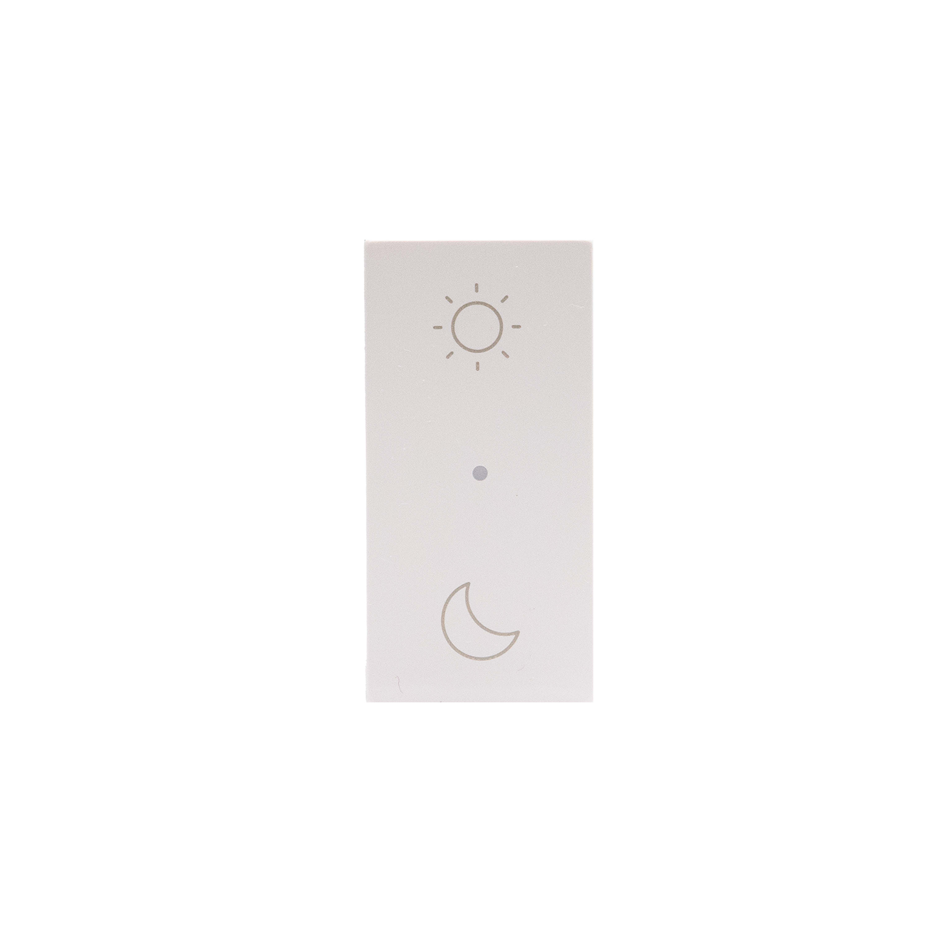 Comando scenario Notte&Giorno wireless dotato di 2 pulsanti per l’attivazione degli scenari Notte e Giorno personalizzabili dall’app Home + Control. Può essere installato in qualsiasi scatola da incasso senza alcun cablaggio. La batteria può essere sostituita senza rimuoverlo dal supporto. LED integrato per la segnalazione batteria scarica. Alimentazione a batteria 3V tipo CR2032 (fornita a corredo) con autonomia di 8 anni - 1 modulo