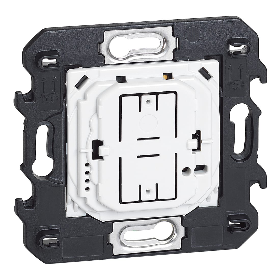 Comando luci wireless. Permette il controllo ON/OFF di uno o più dispositivi connessi per il comando di luci. Installazione superficiale con adesivi riposizionabili (forniti a corredo) o su scatole da incasso.LED integrato per la segnalazione batteria scarica. Alimentazione a batteria 3 V tipo CR2032 (fornita a corredo) con autonomia di 8 anni - 2 moduli
