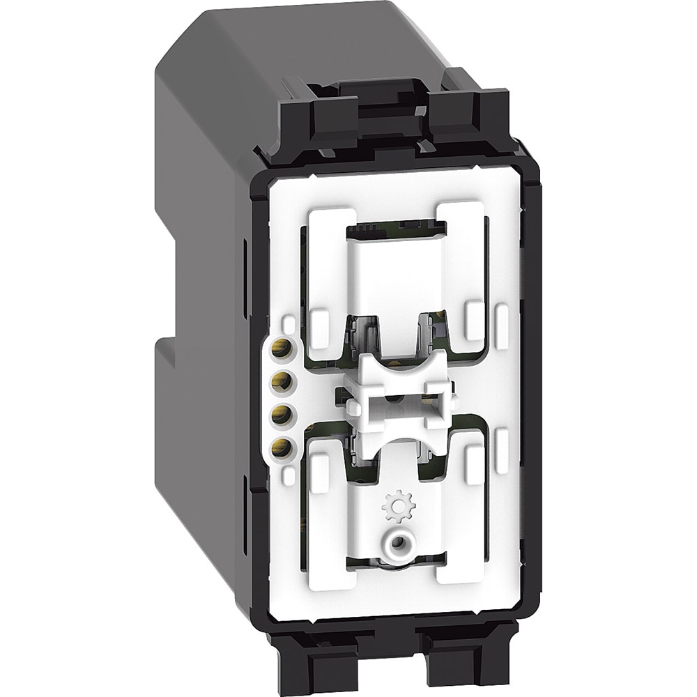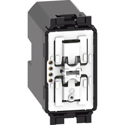 Comando tapparelle wireless. Permette il controllo di uno o più comandi tapparella connessi. Può essere installato in qualsiasi scatola da incasso senza alcun cablaggio. La batteria può essere sostituita senza rimuoverlo dal supporto. LED integrato per la segnalazione batteria scarica. Alimentazione a batteria 3 V tipo CR2032 (fornita a corredo) con autonomia di 8 anni - 1 modulo