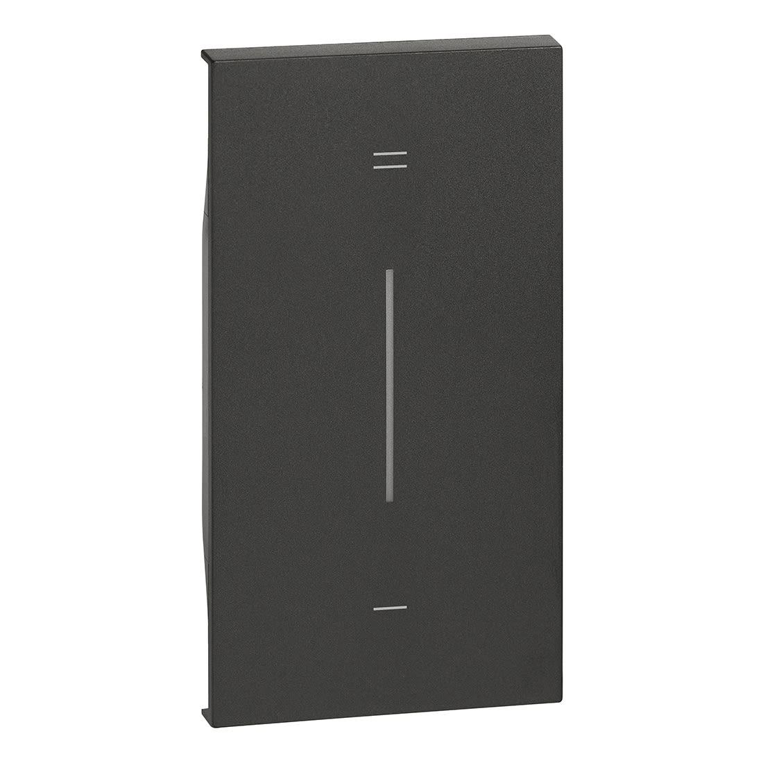 Cover illuminabile - serigrafia + e - per dimmer, per attuatore art. K4672M2L e comando art. K4652M2 - 2 moduli, nero