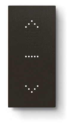 Comando FULL- comando capacitivo per gestire da una a tre funzioni tra le seguenti: on/off luci, dimmer luci, su/giu tapparella con e senza preset, controllo carichi e scenari. Può essere utilizzato anche come comando di gruppo e generale. È dotato di unsensore di prossimità che permette di mostrare icone identificative delle funzioni quando ci si avvicina al comando - 1 modulo - colore nero.