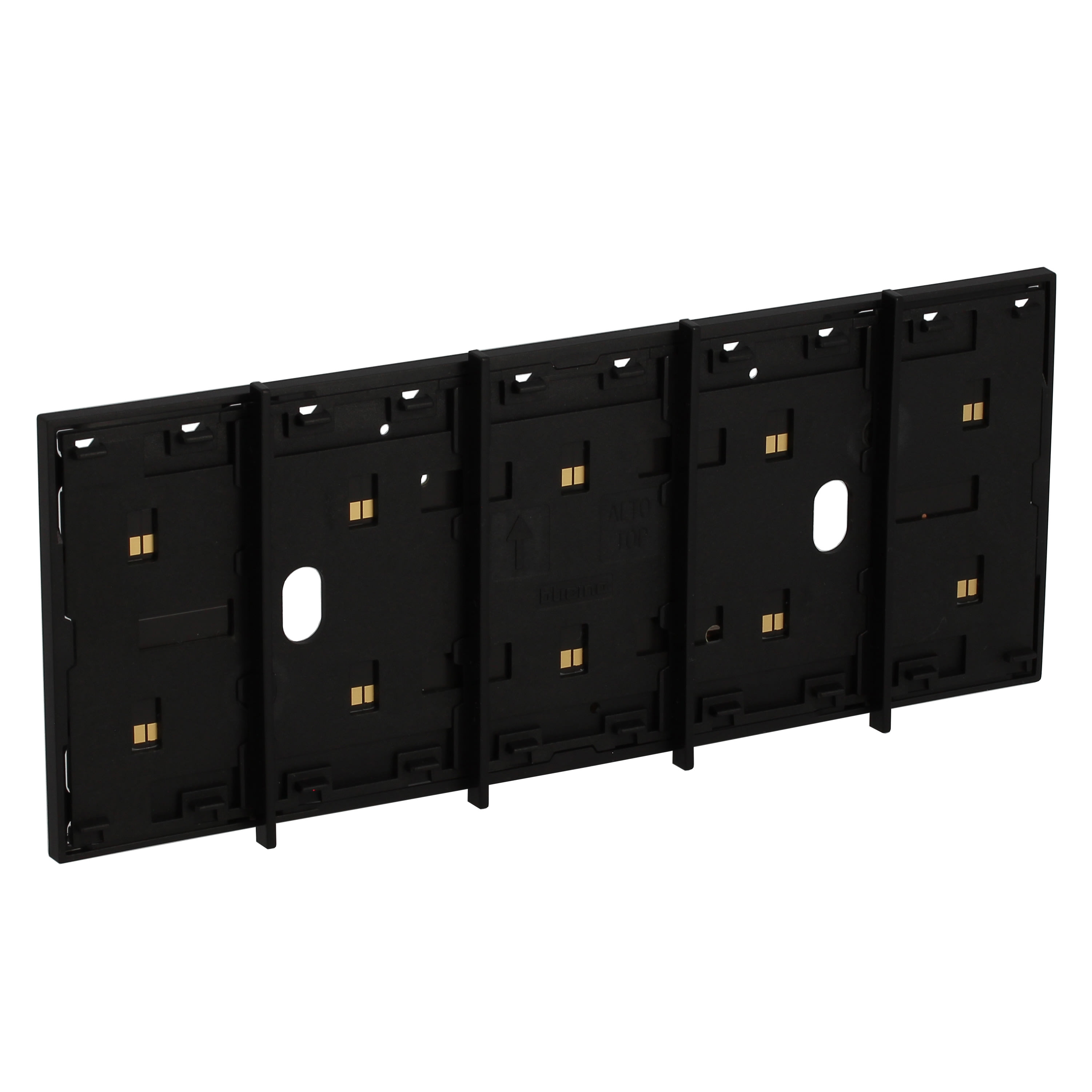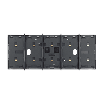 Frame elettrificato con barrette estetiche (rimovibili) di divisione tra i comandi. Per l’installazione di max. 5 comandi digitali o cover art. KW/KG/KM8100. Installazione in scatola da 4 moduli con supporto K4704. Colore nero.
