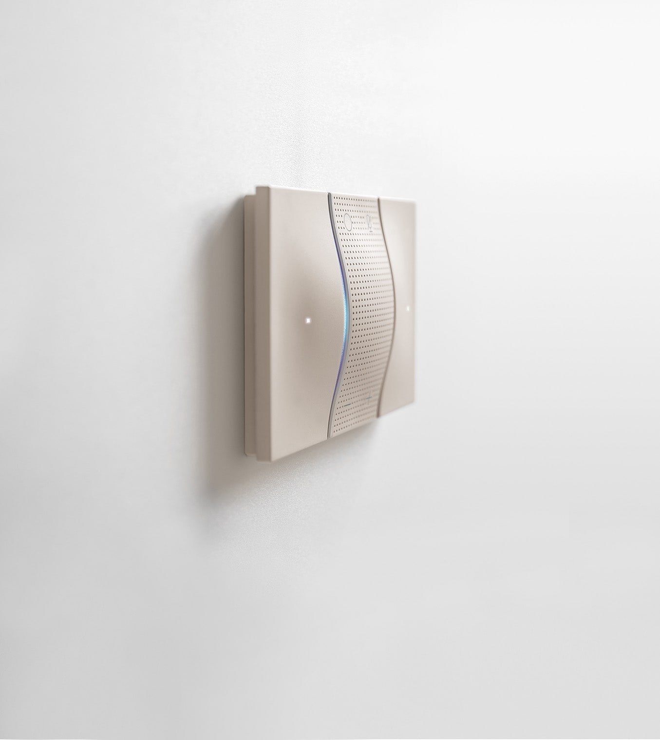 Comando voce. Dispositivo di comando digitale con assistente vocale integrato Amazon Alexa, comprensivo di 2 comandi touch per la gestione delle luci. Associazione tra il dispositivo e la rete WI-Fi di casa, impostazione della lingua di Alexa ecc.. mediante App Digital Controls. Alimentazione a 27V d.c. dal BUS mediante modulo di connessione art. K8001 o eventuale alimentatore supplementare art. K8003 - 3 moduli - colore sabbia.