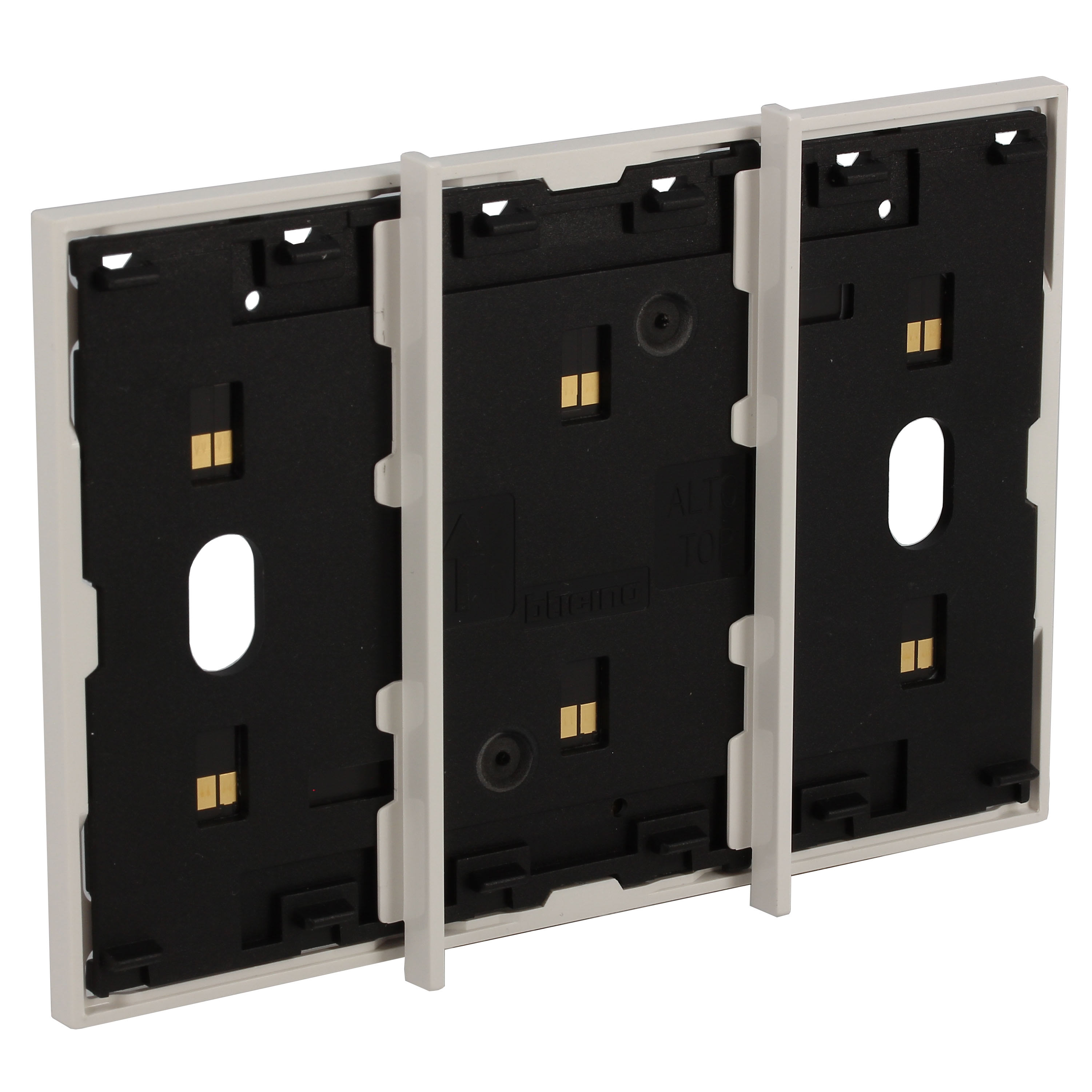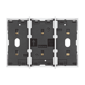 Frame elettrificato con barrette estetiche (rimovibili) di divisione tra i comandi. Per l’installazione di max. 3 comandi digitali o cover art. KW/KG/KM8100. Installazione in scatola da 3 moduli con supporto K4703. Colore bianco.