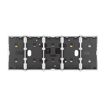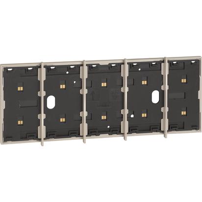 Frame elettrificato con barrette estetiche (rimovibili) di divisione tra i comandi. Per l’installazione di max. 5 comandi digitali o cover art. KW/KG/KM8100. Installazione in scatola da 4 moduli con supporto K4704. Colore bianco.