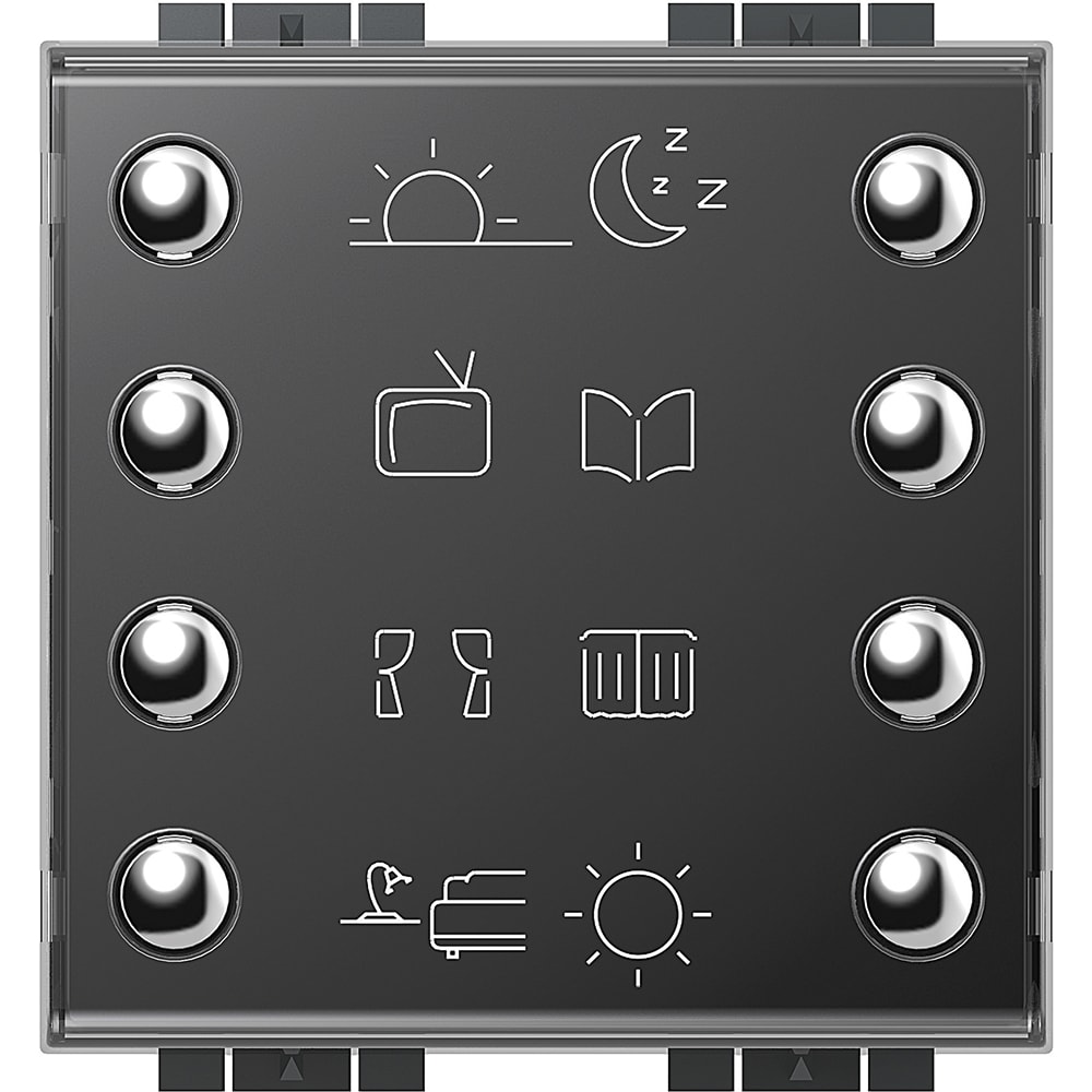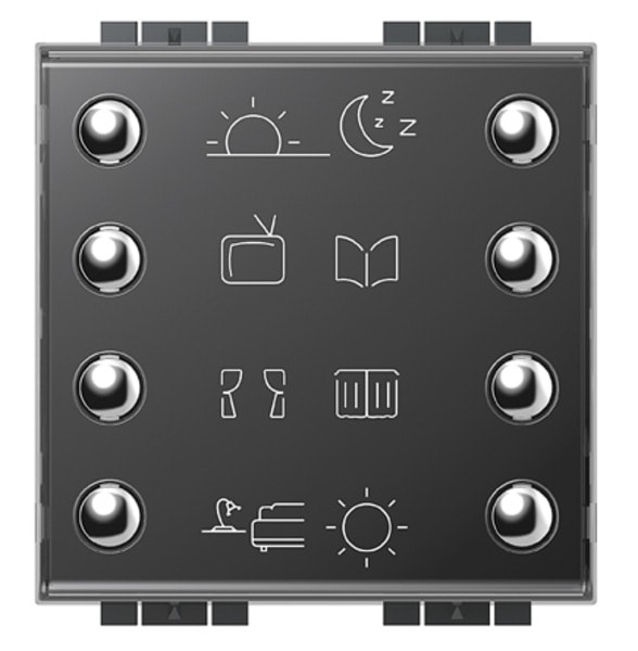 Comando 8 tasti per gestione luci, automazione tapparelle, diffusione sonora e scenari - collegamento a SCS-BUS - dimensioni: 2 moduli