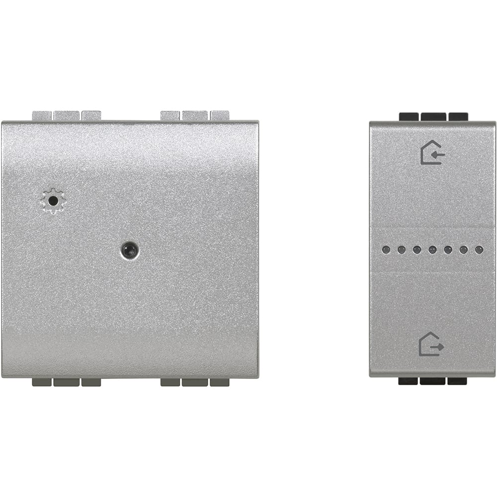 Gateway per creare un installazione connessa della casa. Può essere usato per controllare luci, tapparelle e apparecchiature elettriche collegate a prese connesse utilizzando lo smartphone e l’app Home + Control, gli assistenti vocali, il comando generale all’ingresso della casa. Fornito con il comando scenario Entra&Esci wireless LN4570CWI da incasso necessario per la procedura di associazione di tutti i dispositivi connessi. Alimentazione 110-230 Va.c. - 2 moduli.