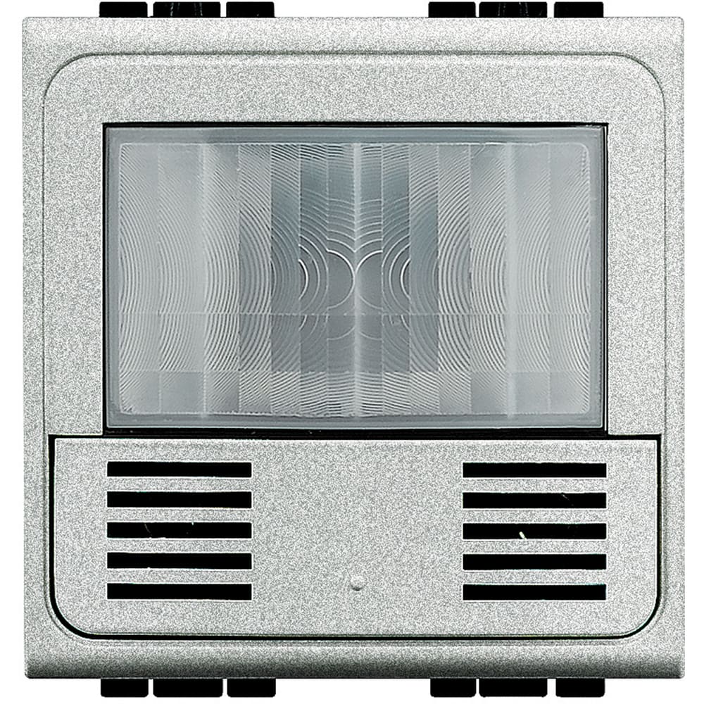 LivingLight tech. Green Switch KNX ad infrarossi passivi (PIR),grado di protezione IP20.Dotato di pulsante a bordo, ideale per l\'installazione in aree di passaggio (es. corridoio,atrii, servizi igienici...).Connessione al bus tramite connettore KNX rosso-nero.Tensione di alimentazione SELV 29 Vd.c. da bus KNX.Installazione in serie civile, da completare con supporto e placca serie civile Livinglight.Dimensioni 2 moduli.
